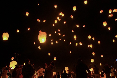 思い思いの願いを書き込んだランタンを飛ばし、