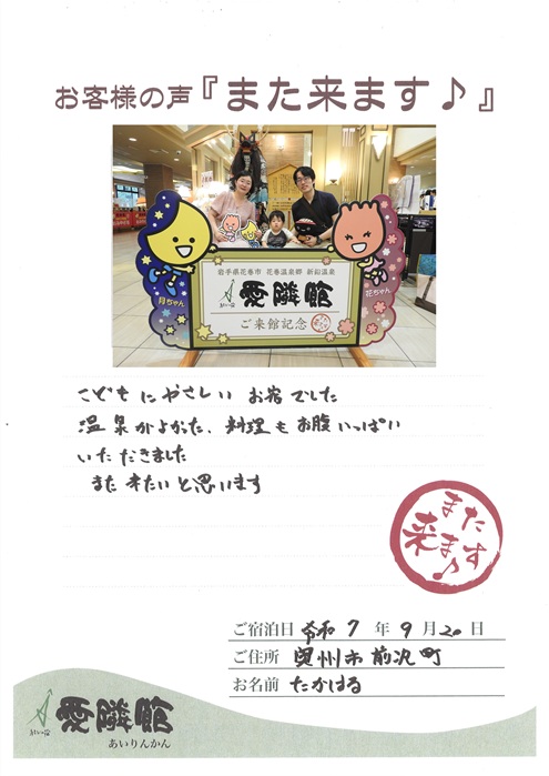 2025年9月20日 岩手県 たかはる様
