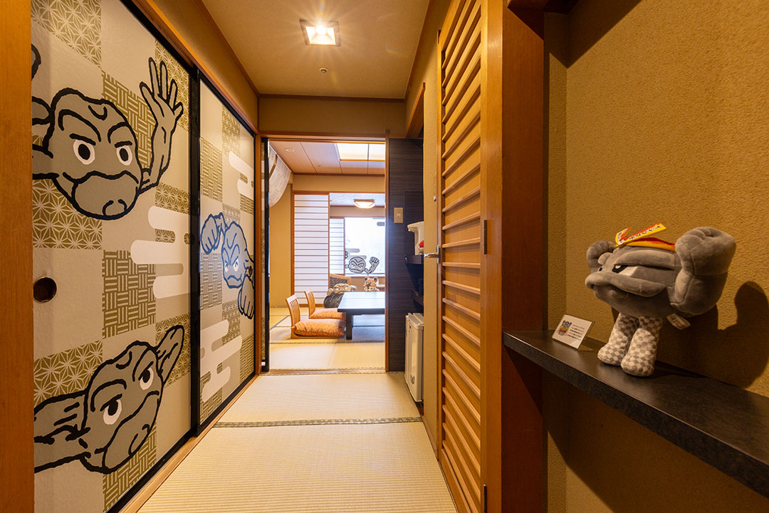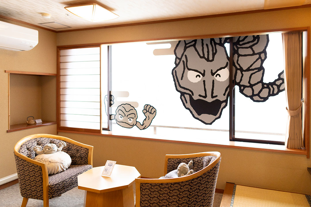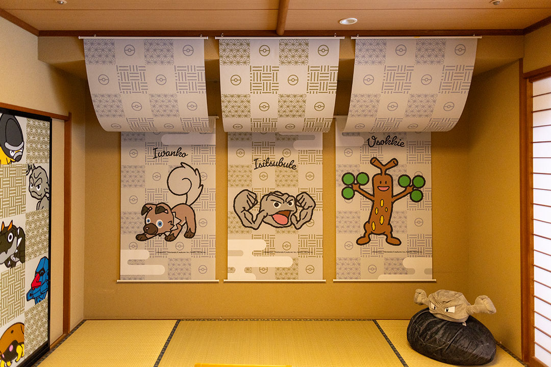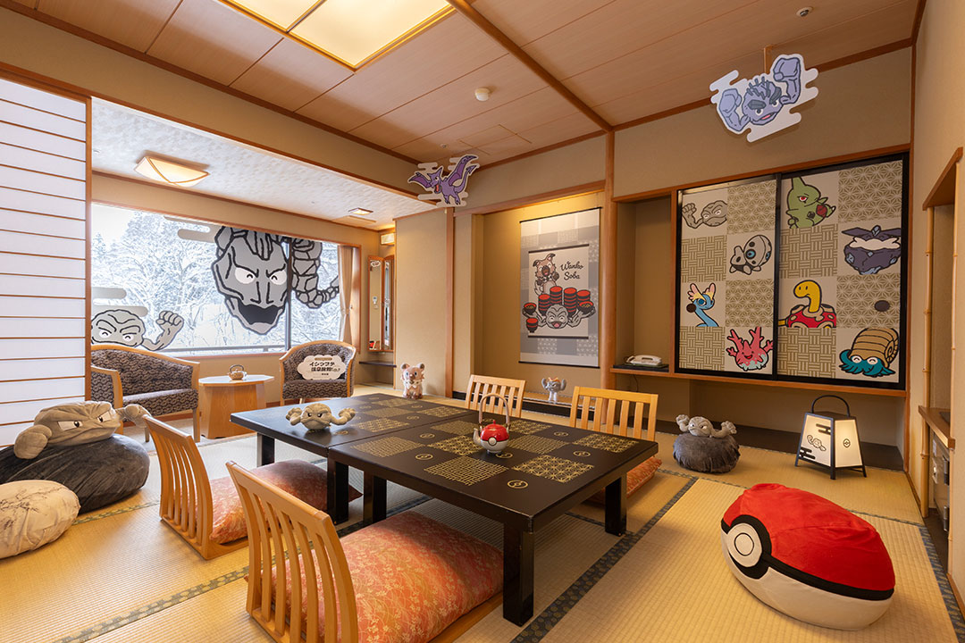 | 客室装飾内容: | いわて応援ポケモン「イシツブテ」と「いわタイプのポケモン」が、窓、襖、テーブルなど各所に装飾されています。